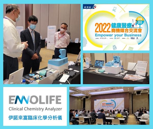 今天是經濟部中小企業處主辦2022健康醫療商機媒合交流會的日子,我們一早就來到活動會場,搶了頭香佈置好攤位,準備向與會的長官及潛在合作廠商大力介紹保生的人醫系列產品ENNOLIFE伊諾來富臨床化學分析儀。